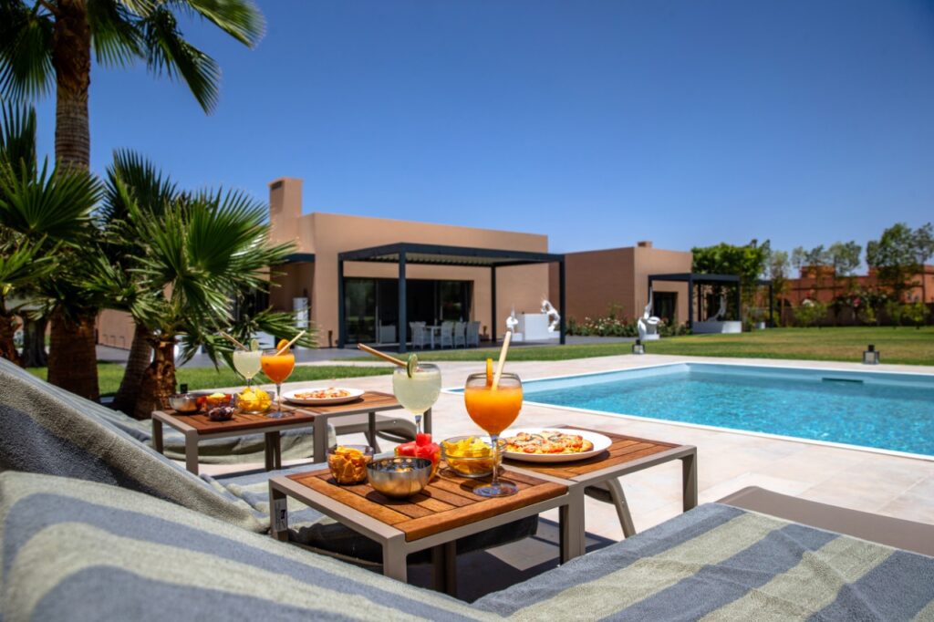 Imaginez-vous plonger dans une piscine étincelante sous le doux soleil marocain, déguster des saveurs exquises de la cuisine locale dans le confort de votre propre villa, et vous détendre dans des chambres somptueusement décorées qui allient charme traditionnel et commodités modernes.